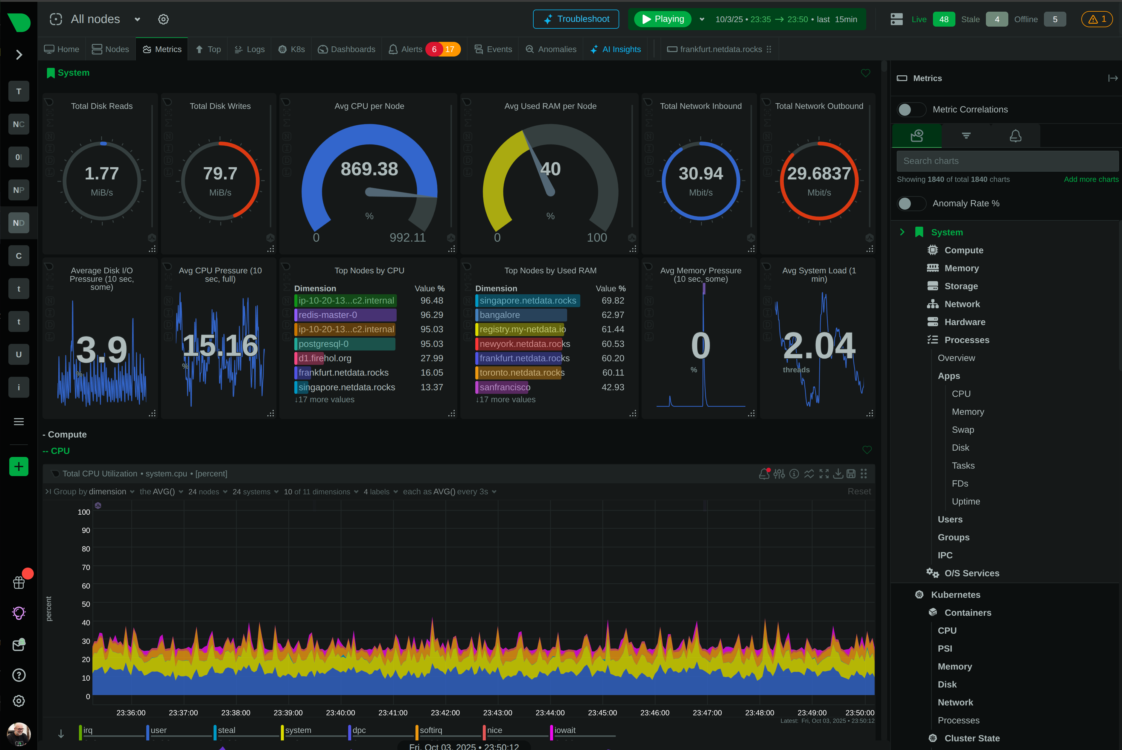 Dynatrace excels at application performance and user experience monitoring but comes with enterprise pricing and centralized data processing. Netdata delivers superior infrastructure visibility at a fraction of the cost with complete data sovereignty. Most organizations achieve optimal results using both platforms for different layers - Netdata for infrastructure, Dynatrace for APM - reducing total monitoring spend significantly while maintaining complete coverage.